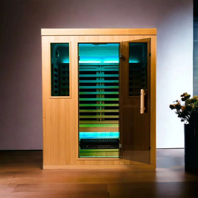 Good Health Saunas’ 3 Person Infrared Sauna is perfect for any home or business. Like our other saunas, the 3 Person Infrared Sauna provides a wide variety of health benefits including detoxification, muscle recovery, pain relief, skin health, and much more. You and your clients can start improving personal health and wellness today with the safest and most effective infrared saunas in the world. Fits 1-3 adults comfortably.