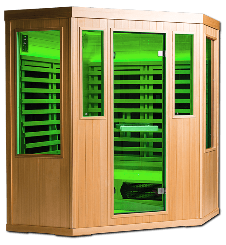 Infrared saunas heat your body directly with infrared lamps. This is different than most other types of saunas, which heat the air around you to heat your body. Good Health Saunas infrared saunas are made out of the highest quality Forest Stewardship Certified, Canadian Hemlock wood, and are complete with tempered glass. Each infrared sauna has multiple heaters, which emit very low electromagnetic field reading, and use chromotherapy lighting options to provide therapeutic stress relief, the expulsion of toxins, and an overall improvement of health and wellness. Using a GHS infrared sauna at home is the best way to safely achieve all the great health benefits of infrared sauna therapy.